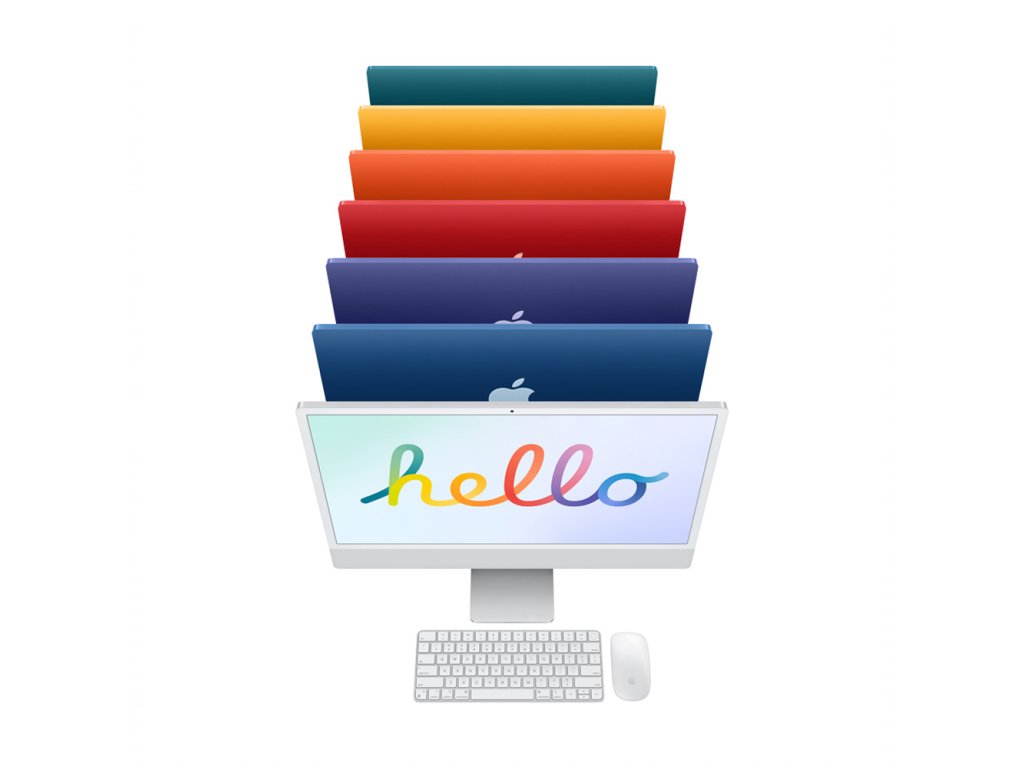 All In One PC 23.5" 4480 × 2520 až 500 nitů, Apple M3 OctaCore (8jádro), Grafika Apple M3 10jádrová, RAM 8GB, SSD Flash 512GB, Wi-Fi, Thunderbolt 3, macOS, HD kamera FaceTime 1080p